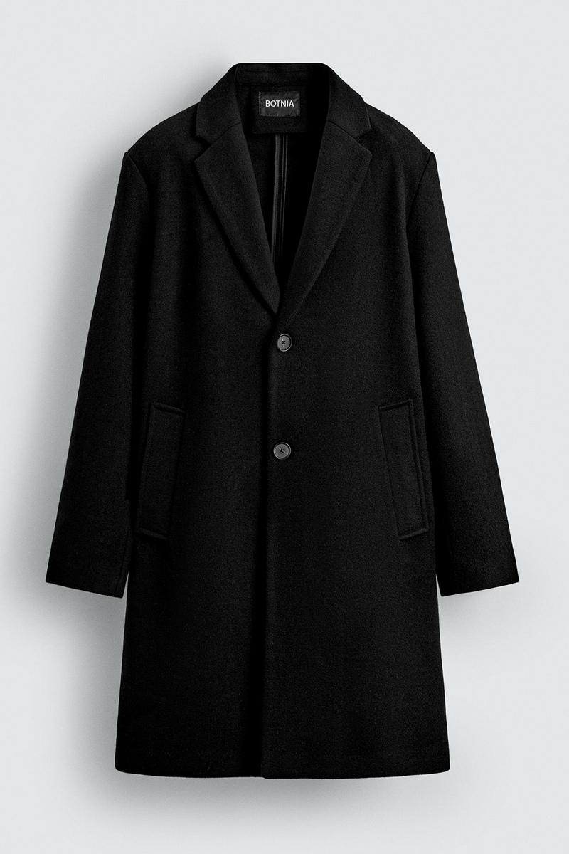 Black - Men Wool Blend Coat