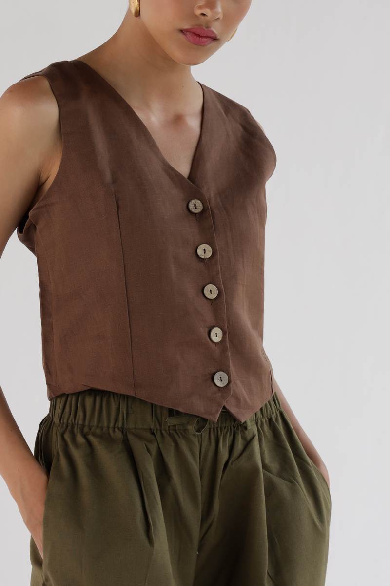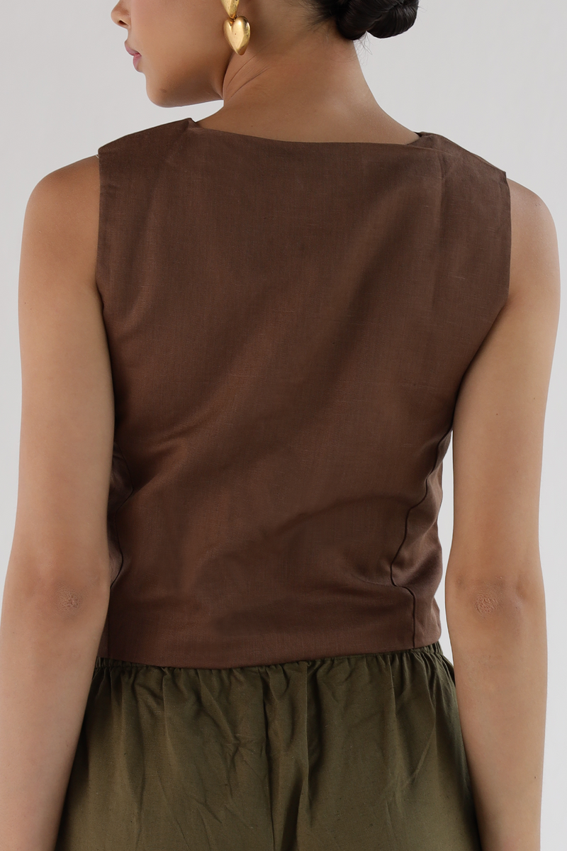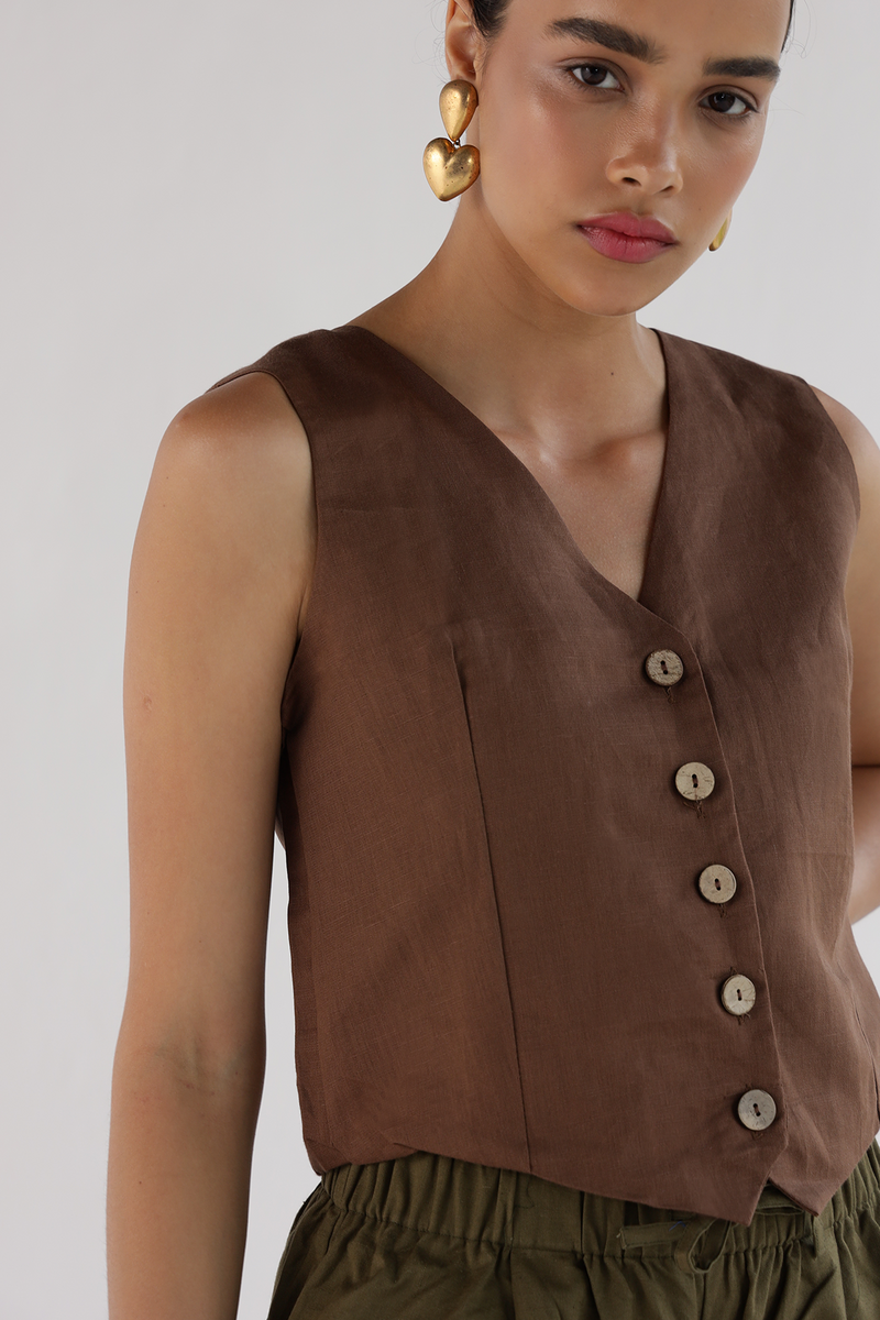 Brown-Waist Coat Top