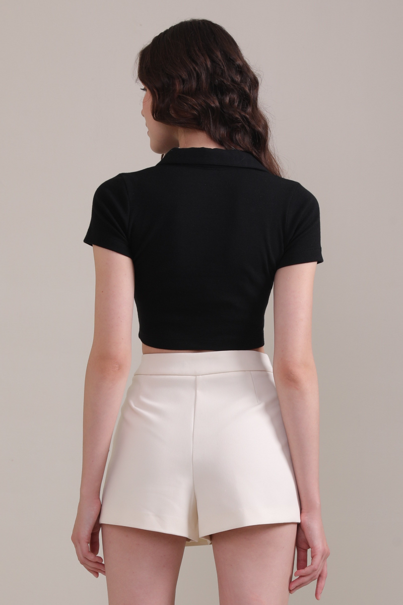 Ribbed Crop Polo T-Shirt T-Shirt- Black