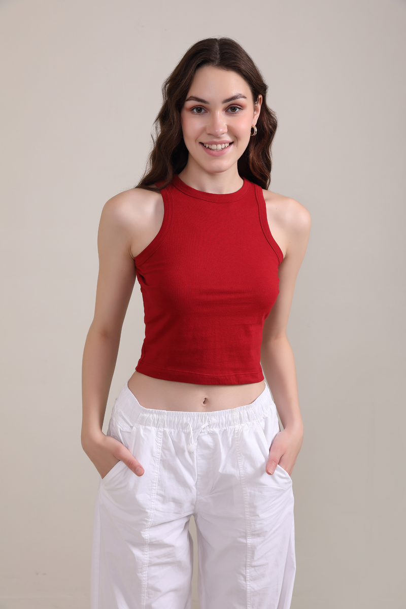 Cotton fabric for a comfortable fit. Cool racerback style with a sleek look around the shoulders.