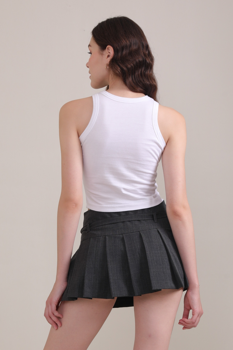Cotton fabric for a comfortable fit. Cool racerback style with a sleek look around the shoulders.