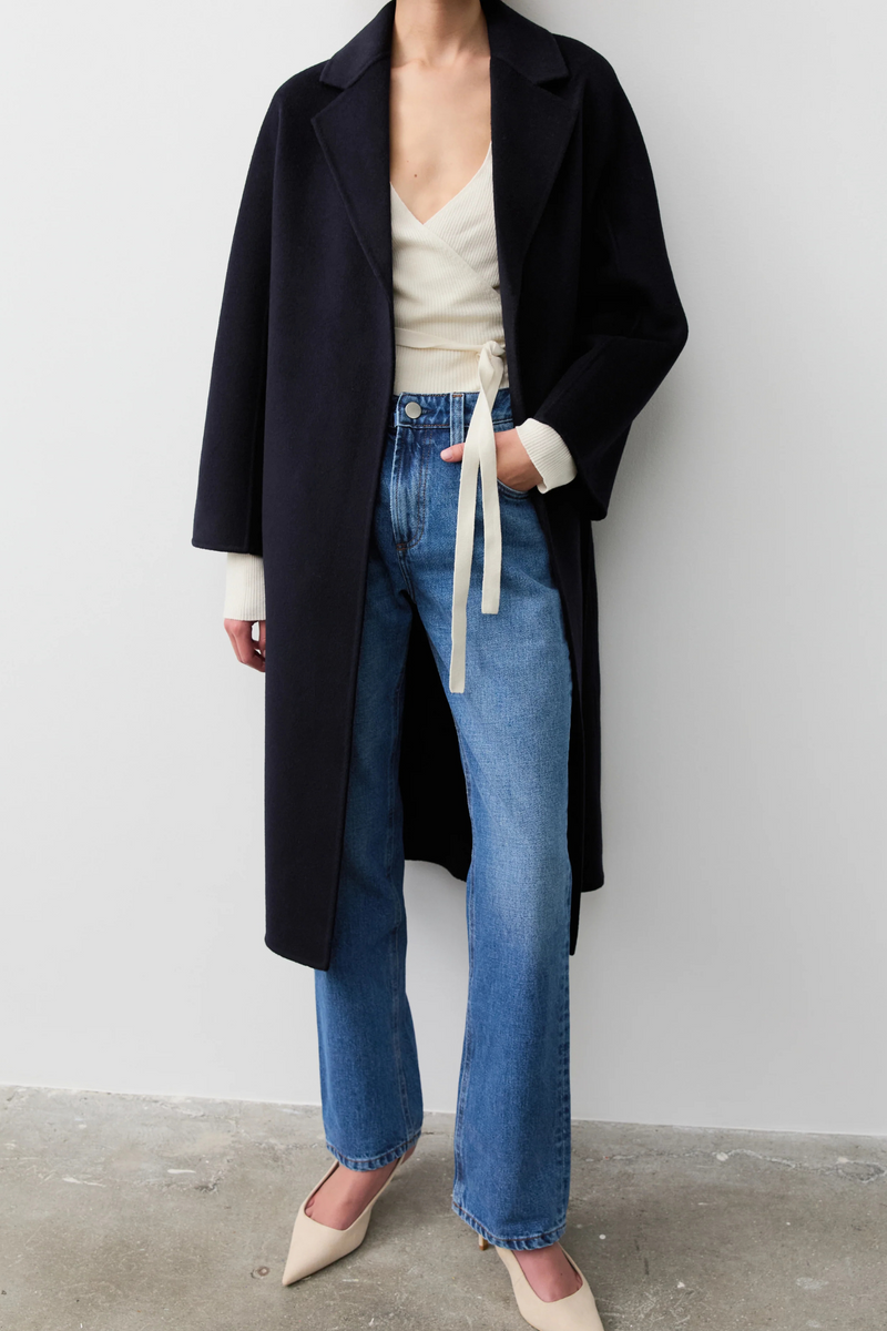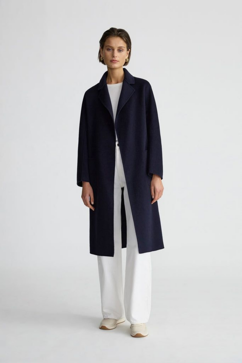 Navy - Wool Blend Long Coat