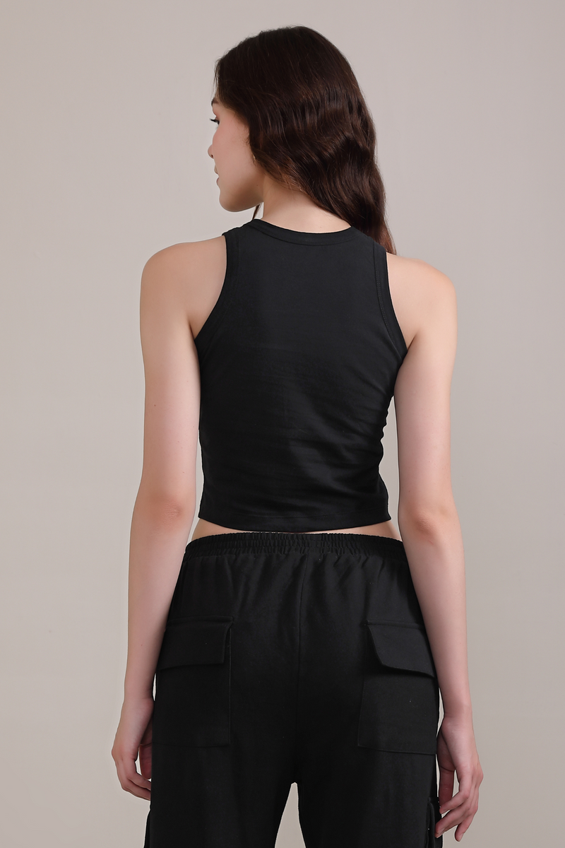 Cotton fabric for a comfortable fit. Cool racerback style with a sleek look around the shoulders.